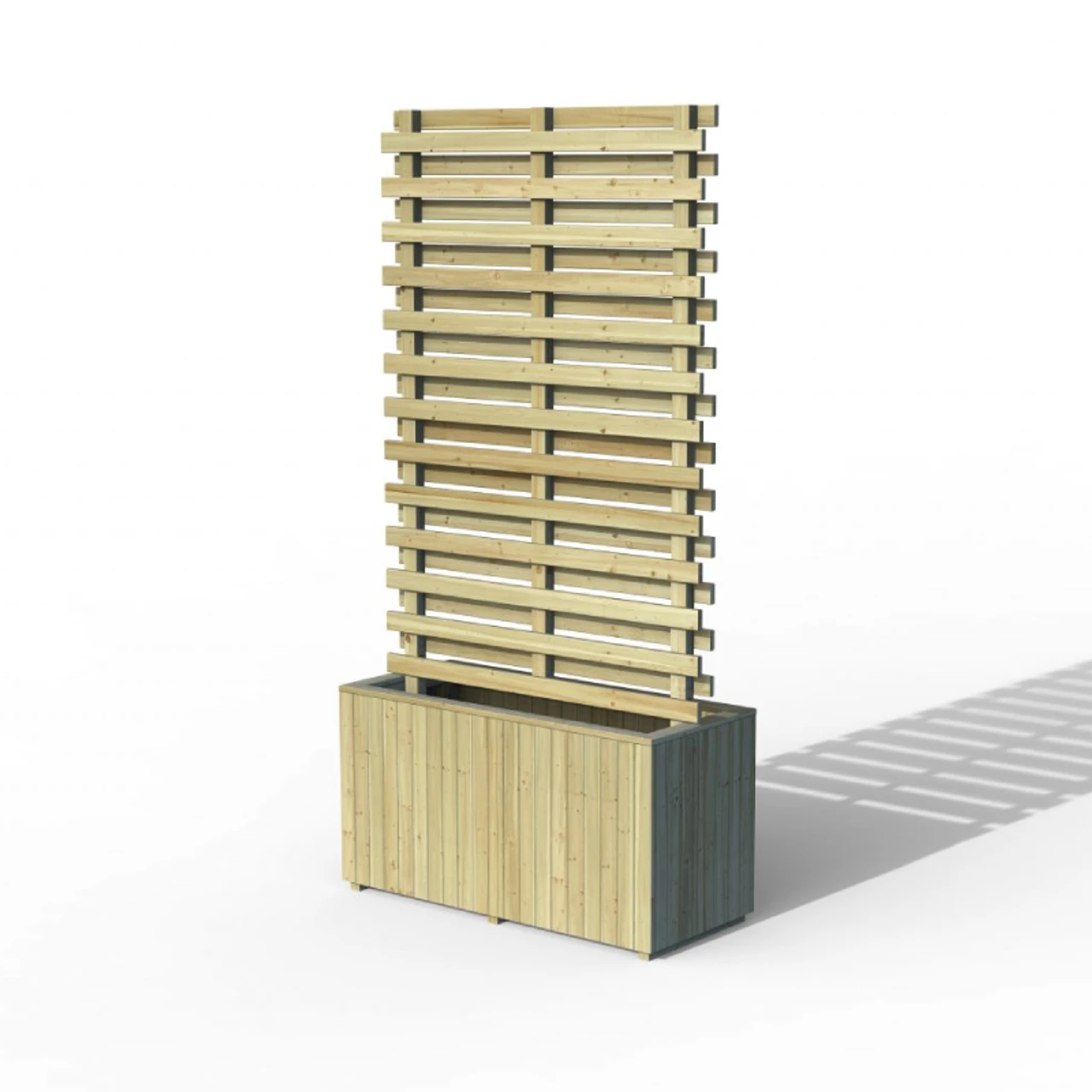 The staggered slats either side of the screen enable plants to be trained both sides so this planter to be used centrally if desired. With modern, clean lines, this planter is a contemporary choice. Use a a screen or planter.