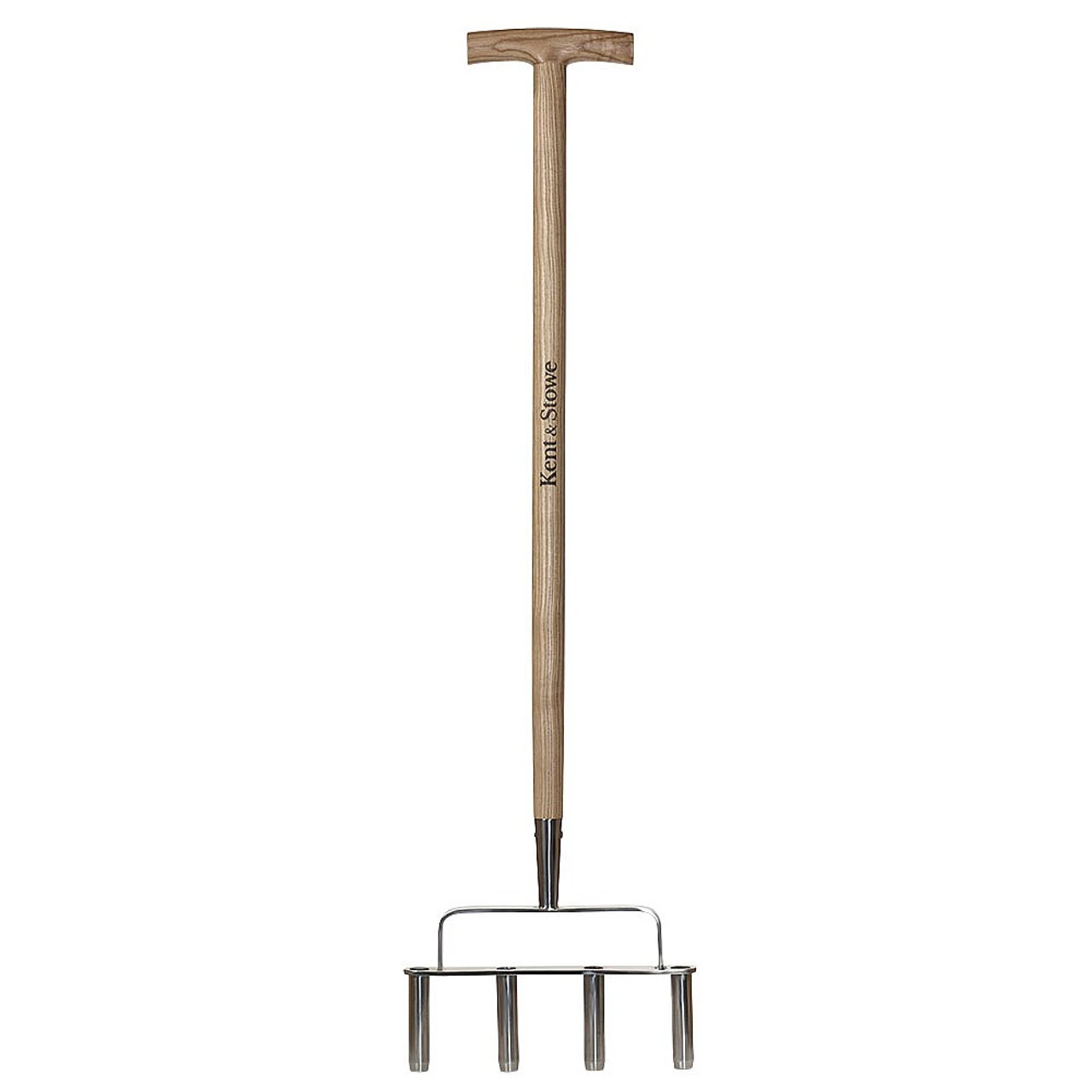 A traditionally styled, high-quality Kent & Stowe Lawn Aerator 4 Prong made from stainless steel and beautiful ash wood. This tool is the perfect height for easy working, as well as eliminating the need for bending. Therefore, reducing back strain. High-quality stainless-steel head