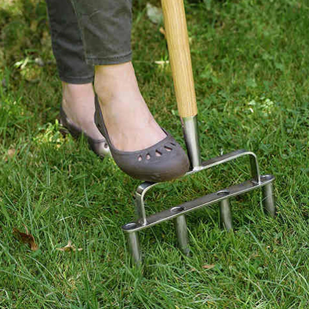- 4 hollow tines to remove core from the earth to relieve soil compaction and stimulate root growth